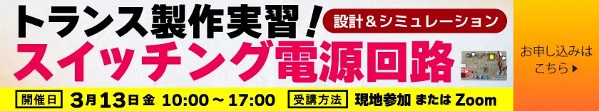 [Onsite/KIT/data]トランス製作実習!スイッチング電源回路設計&シミュレーション 3月13日開催:狙った性能を発揮する実用フライバック・コンバータの作り方 |