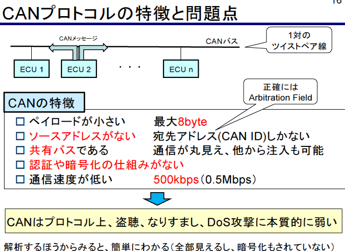 - 分離と認証:重要ECUは論理的に分離し,可能であればメッセージ認証を導入すること