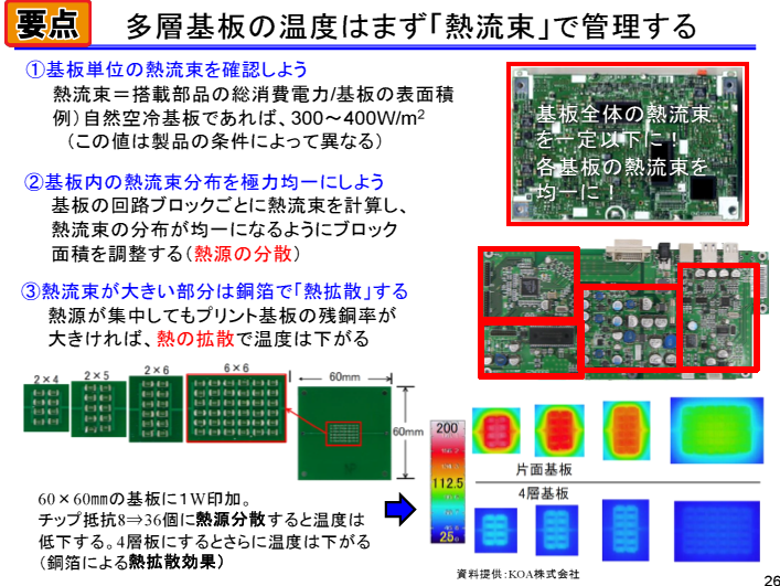 - 部品レイアウトや基板設計により熱源の集中や分散を調整する.