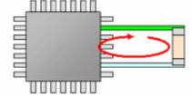 ICの放熱経路90$%$は基板へ 放熱はトップ面,サイド面,ボトム面の3つの経路に分かれる.自然空冷条件下ではボトム経由で基板に伝わる熱が圧倒的に多くなる |
