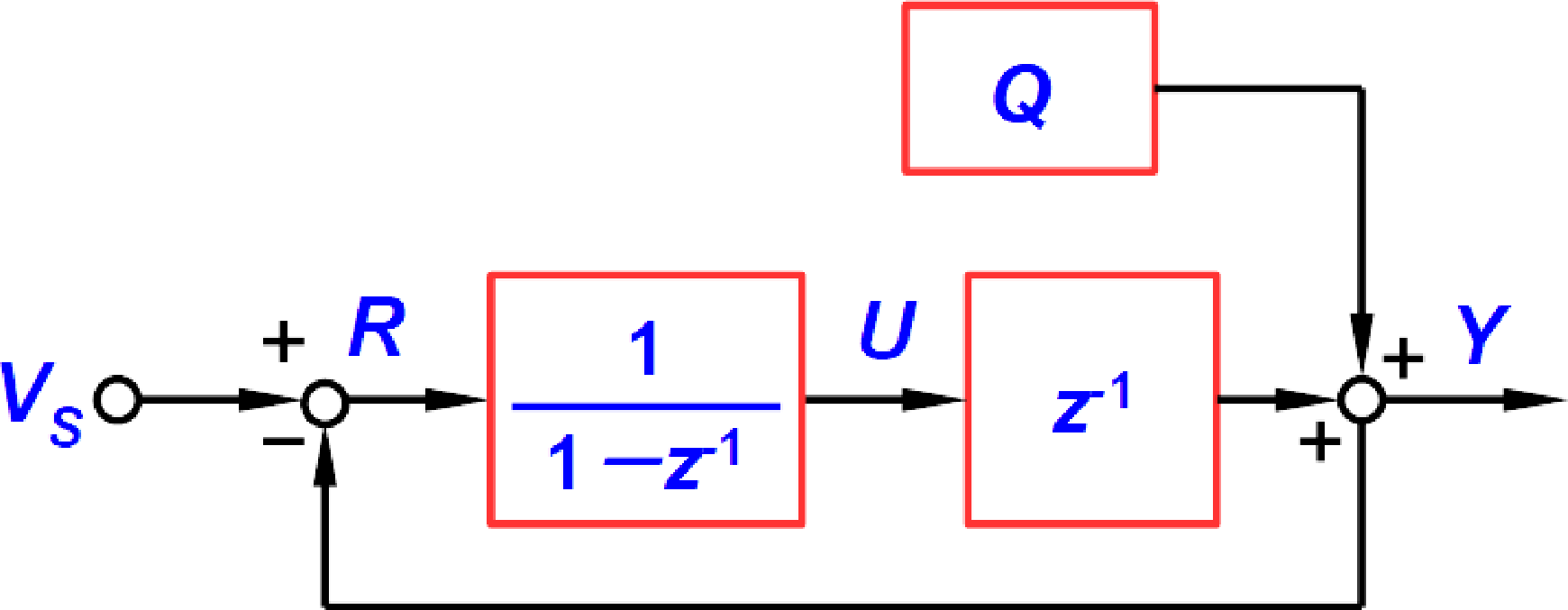 Y – Q &= \frac{1}{1 – z^{-1}} (V_S – Y) z^{-1} \\