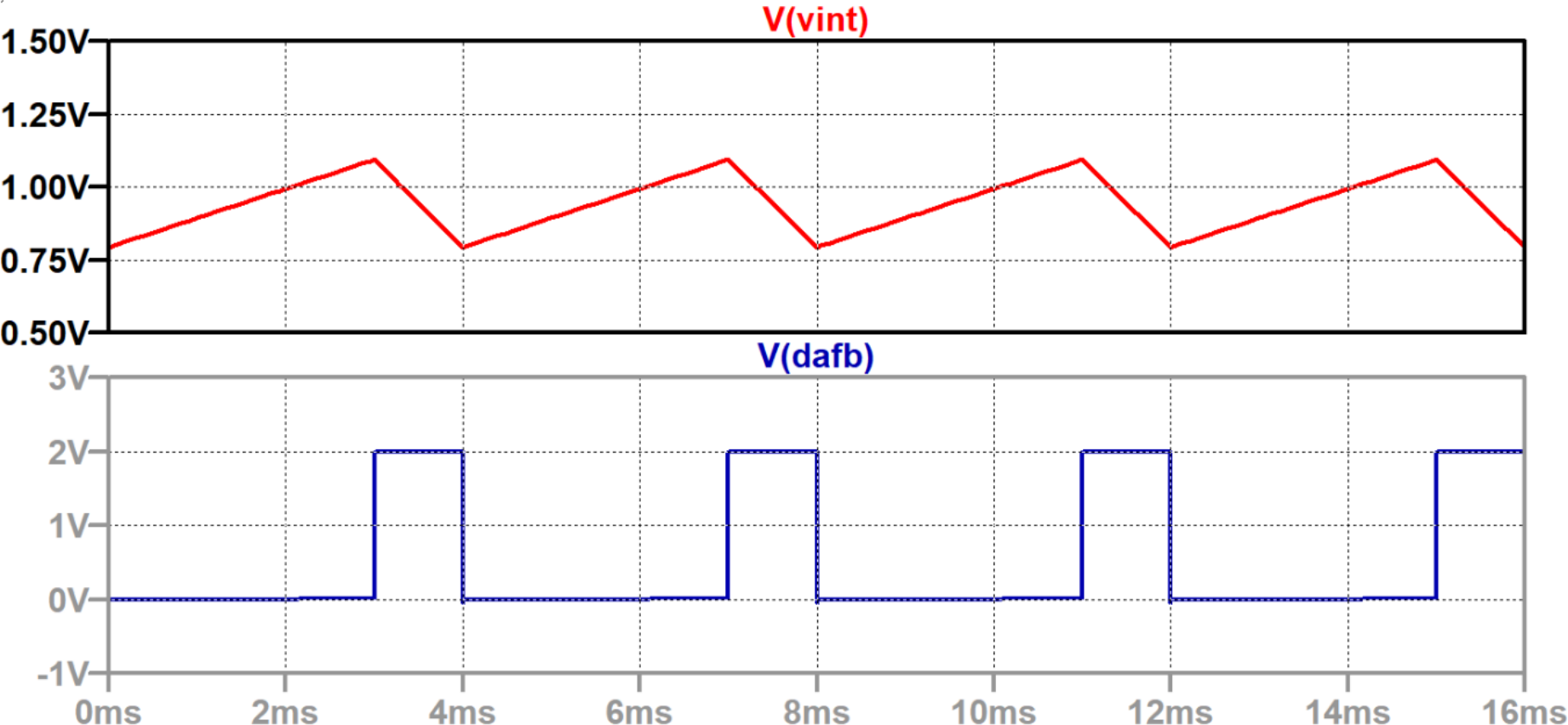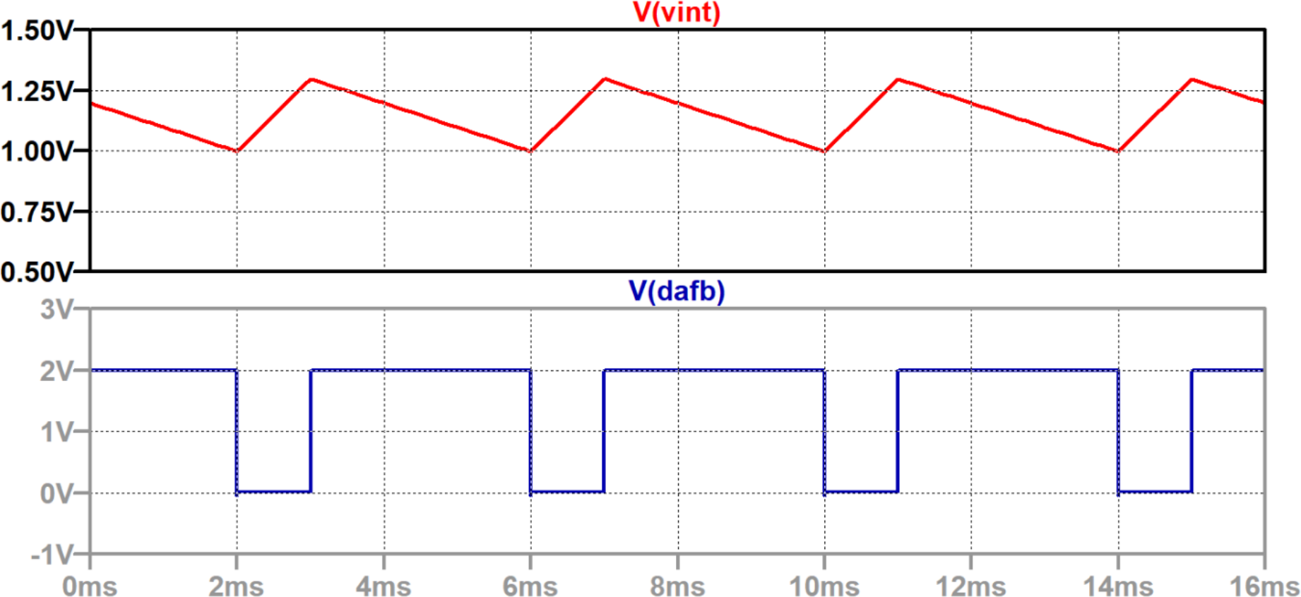 それでは実際にノイズ・シェーピングが動作するようすをLTspiceのシミュレーションで確認してみます.ここではリファレンス電圧を2 V,サンプリング・クロック周波数を1 kHzとして,16回サンプリング・クロックが入り($\Sigma\Delta$変調が行われ),16個のシリアル・ビット列が得られるものとします.
