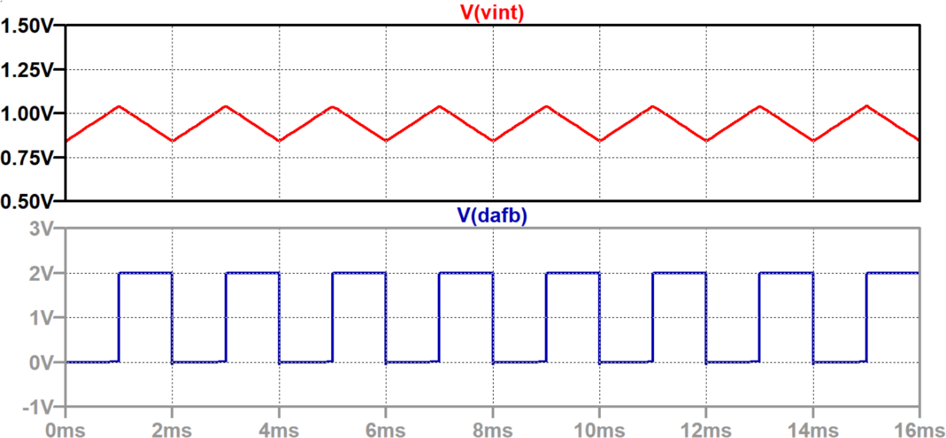図3に示すのは,入力電圧が1.00 V(リファレンス電圧の1/2)のときの$\Sigma\Delta$変調器の動作です.