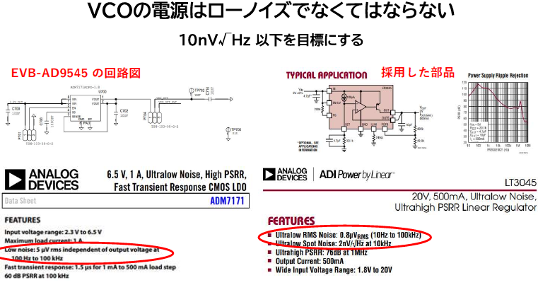 - PLLのVCO電源にはノイズ密度10nV/$\sqrt{ \text{Hz}}$以下のLDOを選ぶ