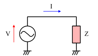 図1に示す回路において,インピーダンス$Z$は式\eqref{eq:impedance}で表され,その値は回路に加わる電圧$V$と,回路を流れる電流$I$の比によって求めることができます.