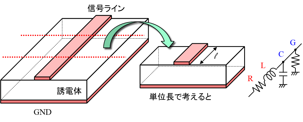 伝送線路の等価回路は図2に示す形になります.この伝送線路は,マイクロストリップ・ライン(microstrip line)と呼ばれます.