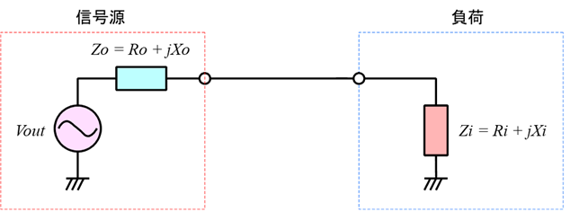 図4において,信号源から負荷へ伝える電力を最大にするためには,式\eqref{eq:matching_1}と式\eqref{eq:matching_2}の2つの条件を満たす必要があります.