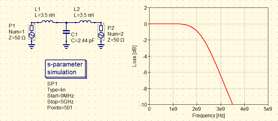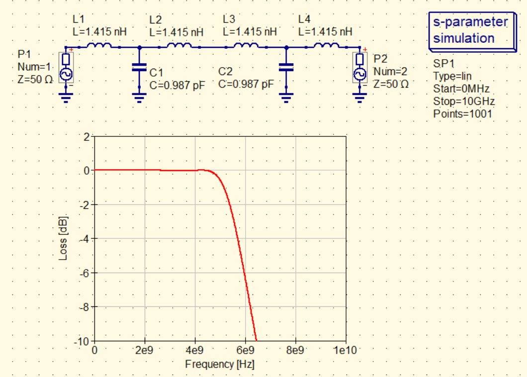 2GHz以上での減衰特性が急峻なLPF になっていますが,1.5GHz以下では,通過特性は平坦で信号の減衰がほとんどありません.ここがポイントです.