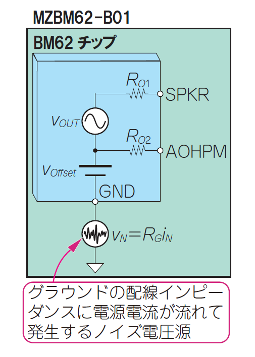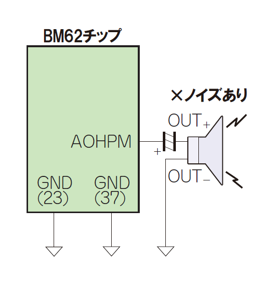 BM62チップ全体の電位がノイズによって揺らいでいる場合は,“SPKR”端子と“AOHPM”端子に「コモン・モード・ノイズ」がのっています.
