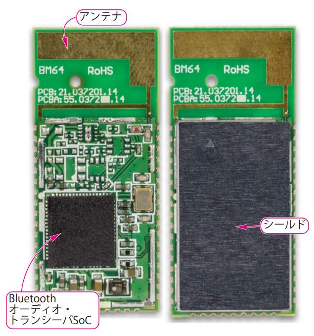 BM62は,Bluetoothの標準的なコーデックである“SBC”(Sub-Band CODEC)を搭載しています.また,iPhoneなどが搭載する高音質コーデック信号処理“AAC”(Advanced Audio Coding)に対応しています.