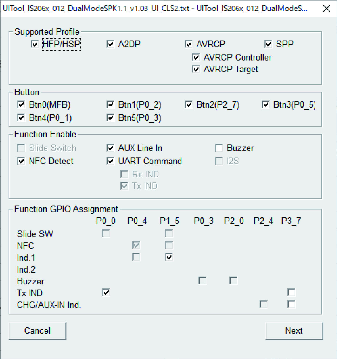 - デフォルトの[UITool_IS206x_012_DualModeSPK1.1_v1.03_UI_CLS2.txt]を選択する(図12)