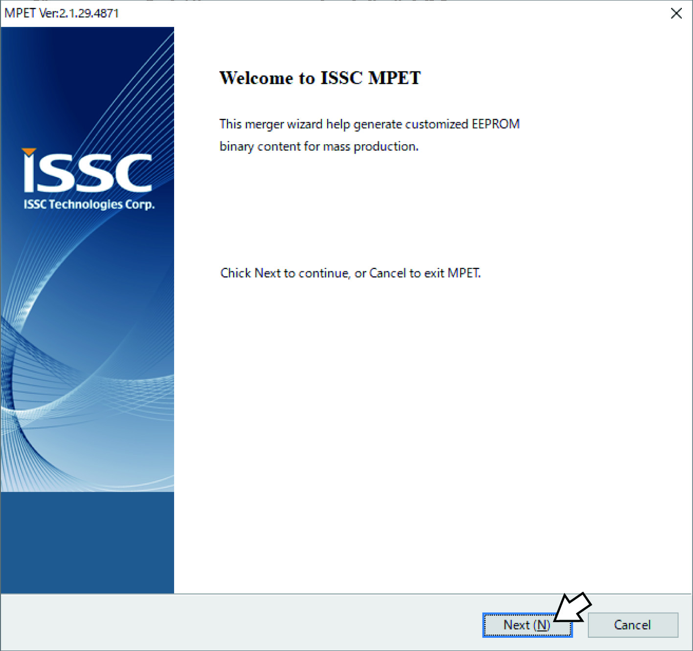 - “MPET Tool”ディレクトリ内の“MPET.exe1”を起動する