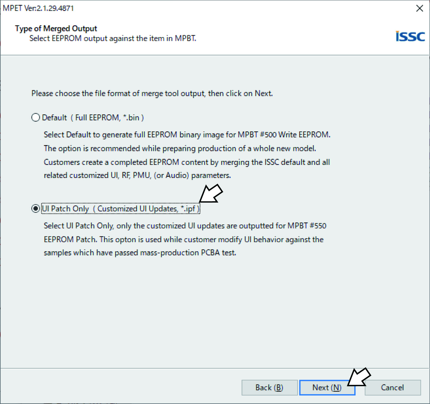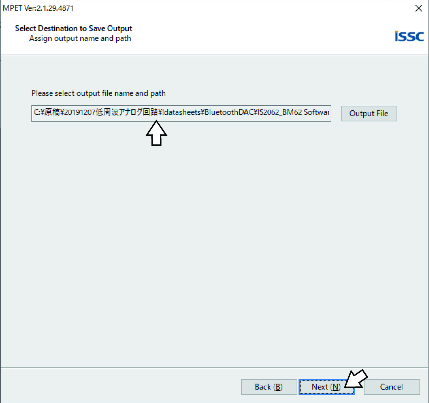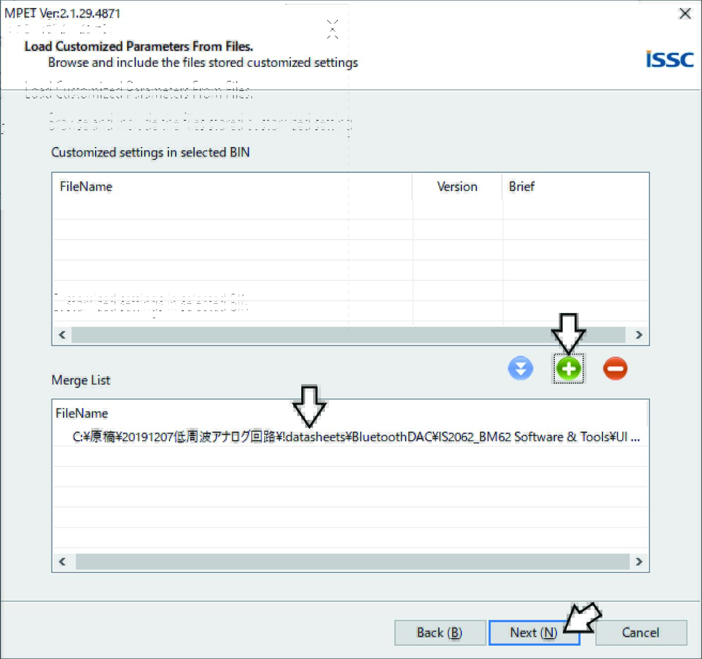 - “File Path”欄の[…]ボタンをクリックする.さきほど“MPET Tool”で作成したipfファイルを選択する