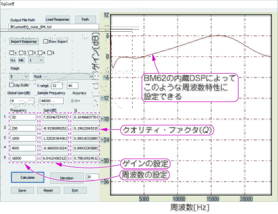 ②周波数特性を調整できる音声処理用DSPを内蔵