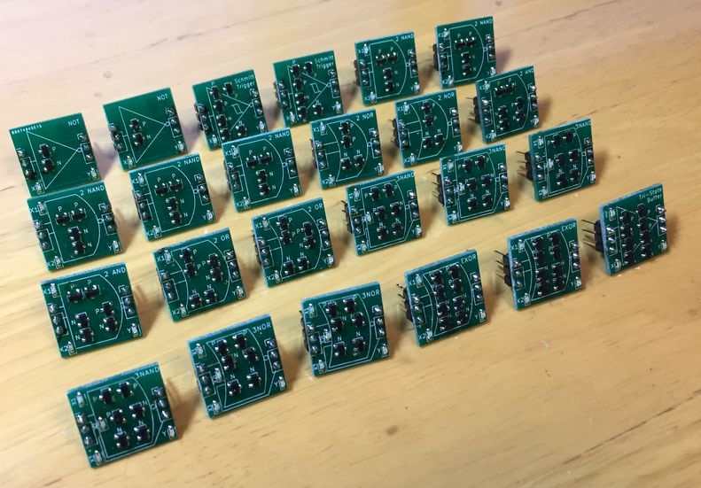 MOSFETでできた全10種,合計24個の論理ゲートを組み合わせていく
