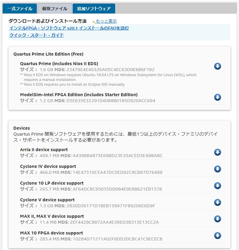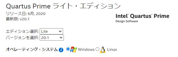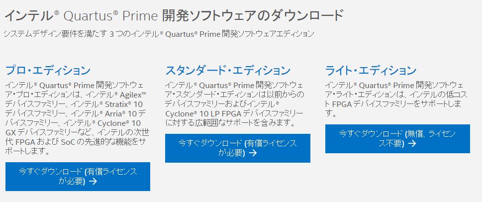Quartus Primeのインストーラをダウンロードするために,次のIntel社のWebページにアクセスします.