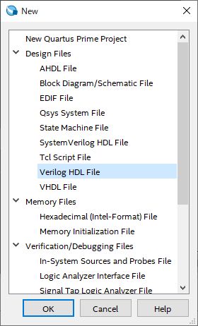 最初にハードウェア記述言語(HDL)で実装したい回路構造を記述します.今回は“Verilog HDL”(以下Verilog)を使います.Verilogのエディタは,Quartus Primeに備わっているものを利用することにします.