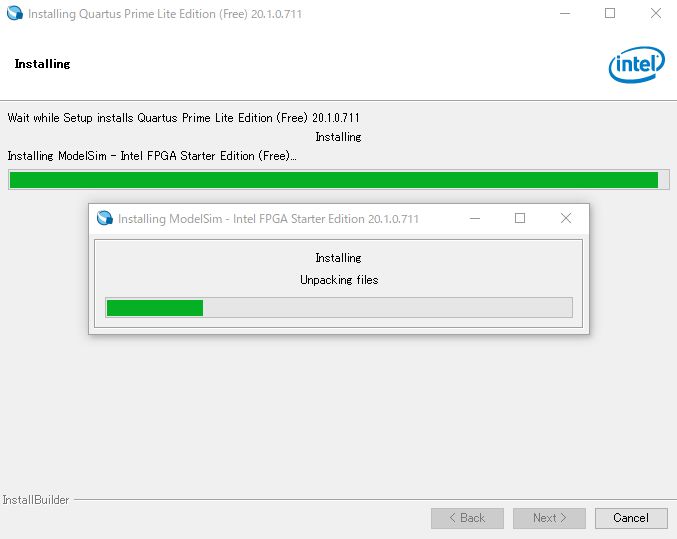 Quartus Primeのインストールが完了すると,自動的にシミュレーション環境“Model Sim”のインストールが始まります(図9).インストール完了まで待ちます.