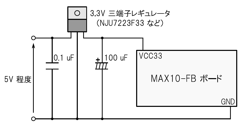 MAX10-FBボードをコンフィグレーションするときは,コネクタ“CN7”に書き込み器を接続します.CN7の隣には“CN5”および“CN6”というコネクタを取り付けられるようになっていますが,今回使う書き込み器と干渉するのでこれらのコネクタは取り付けずに実験を進めます.