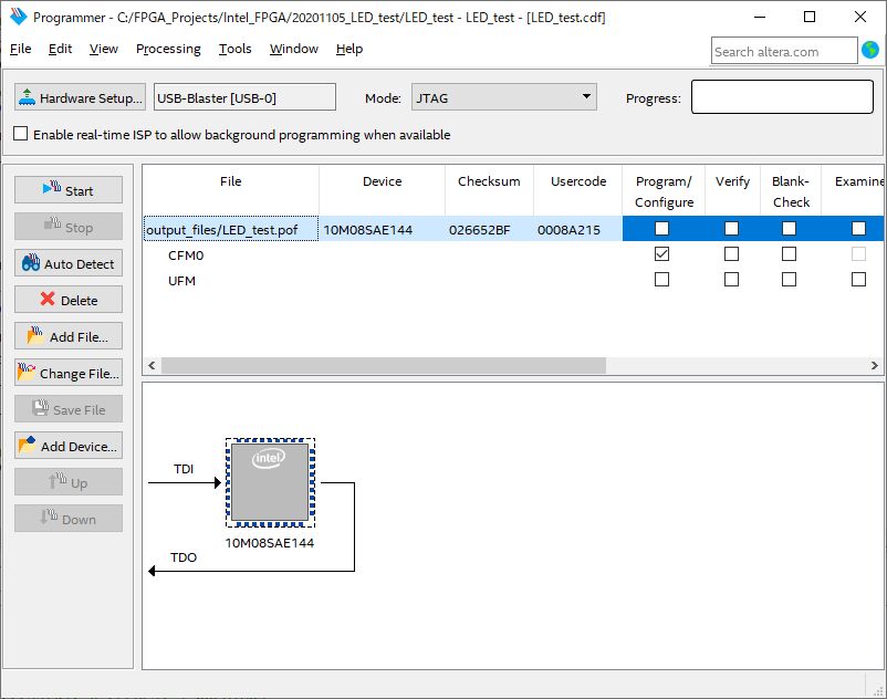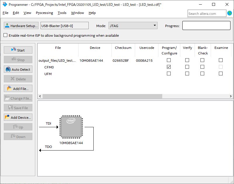 コンフィグレーション用のファイルができたら,「書き込み器」を使ってFPGAに書き込みます.今回使うFPGAの“MAX10”は内部にSRAMとフラッシュ・メモリを内蔵しています.後でそれぞれに対する書き込み方法を解説します.