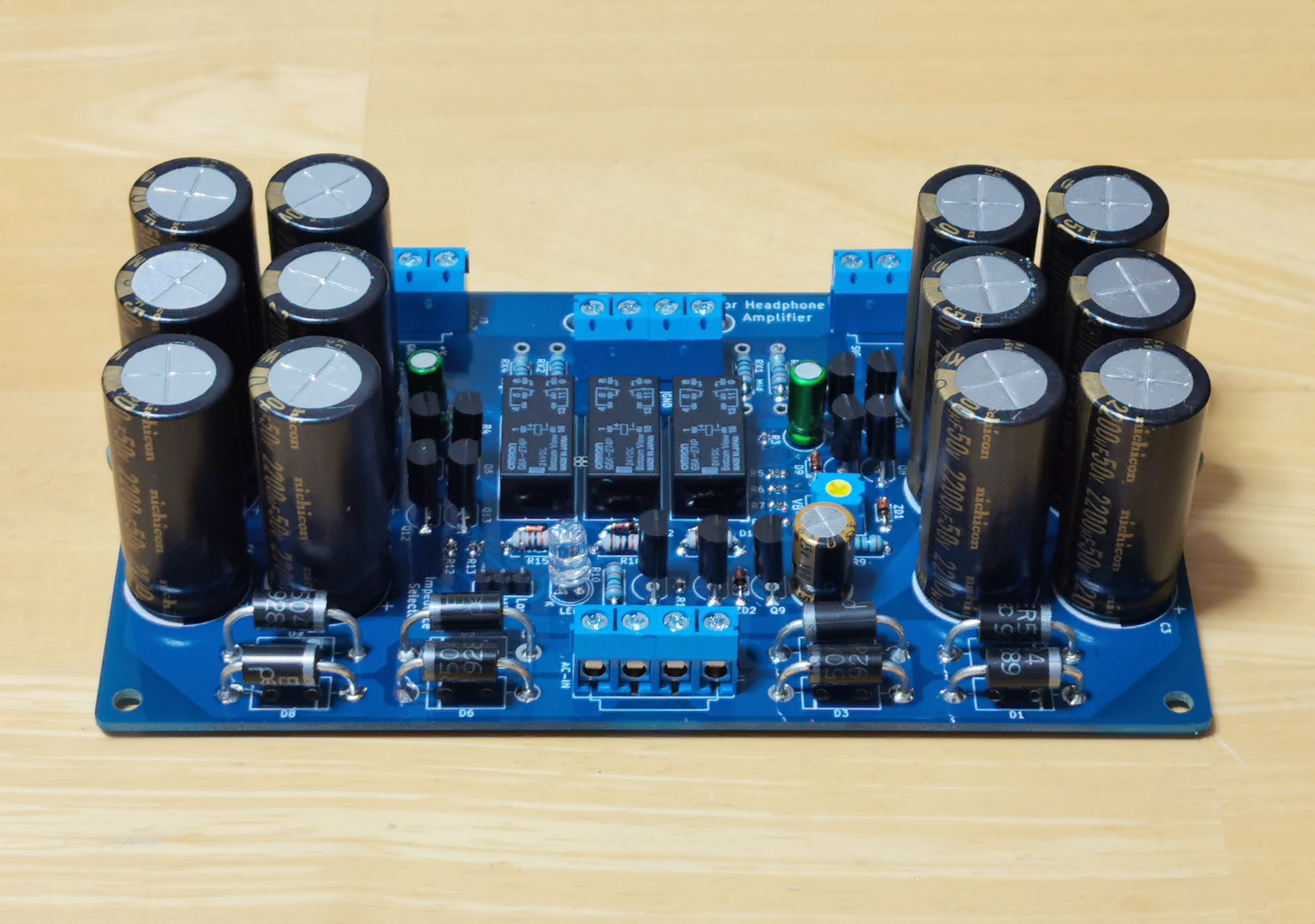 正負独立整流,クロスバー・ツイン接点のオムロン製リレー(L1,L2,L3),3段階(100Ω,10Ω,0Ω)の出力インピーダンス切り換え機能,DCオフセット検出による出力保護機能,電源ONタイマ・ミュート機能などを搭載しています.小型化のため一部チップ抵抗を使っています.