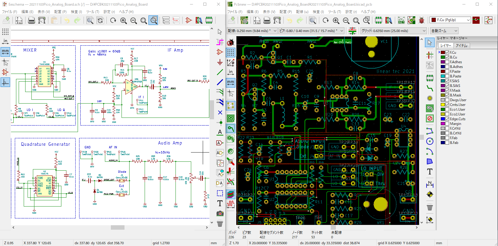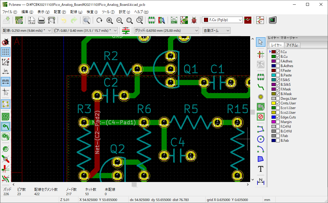 図1 “KiCad”で基板設計をしている様子