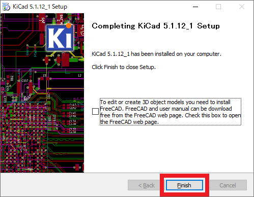インストールが完了すると図18の画面が表示されます.3Dモデル用のCADをインストールするか聞かれますが,今回はインストールせずに進めます.[Finish]をクリックすればインストール完了です.