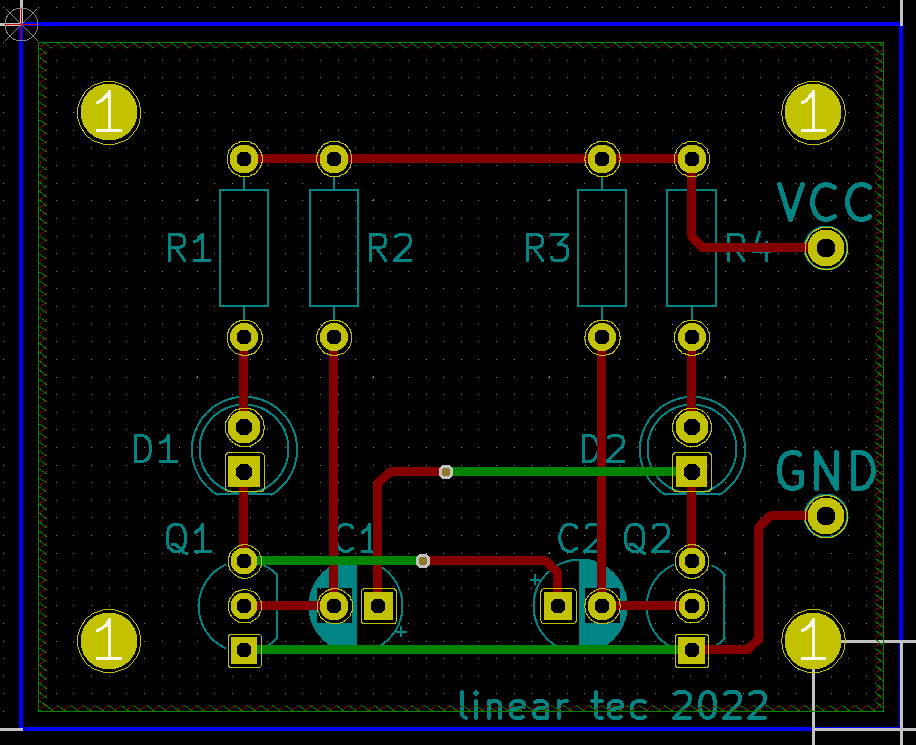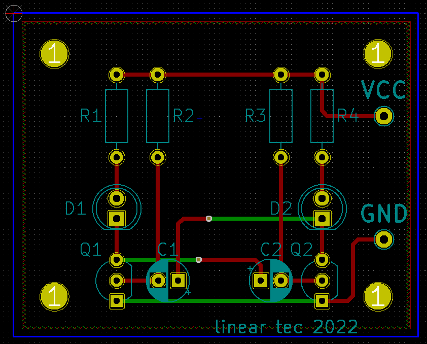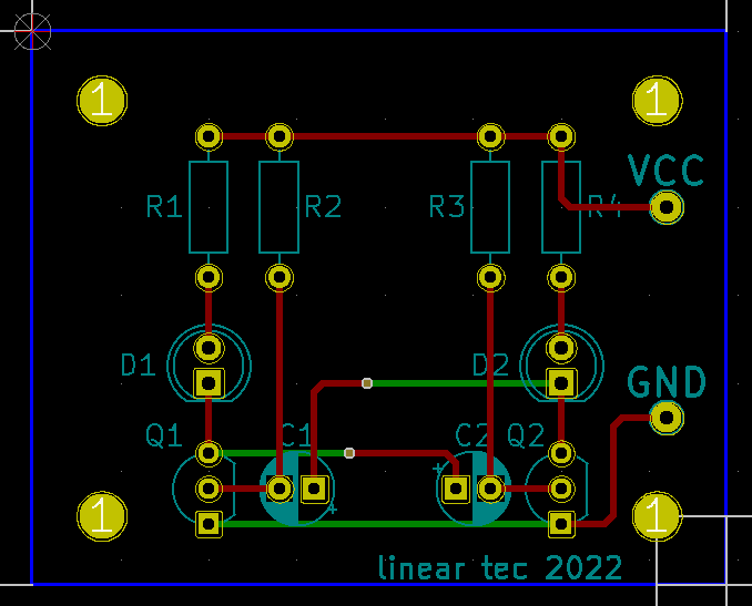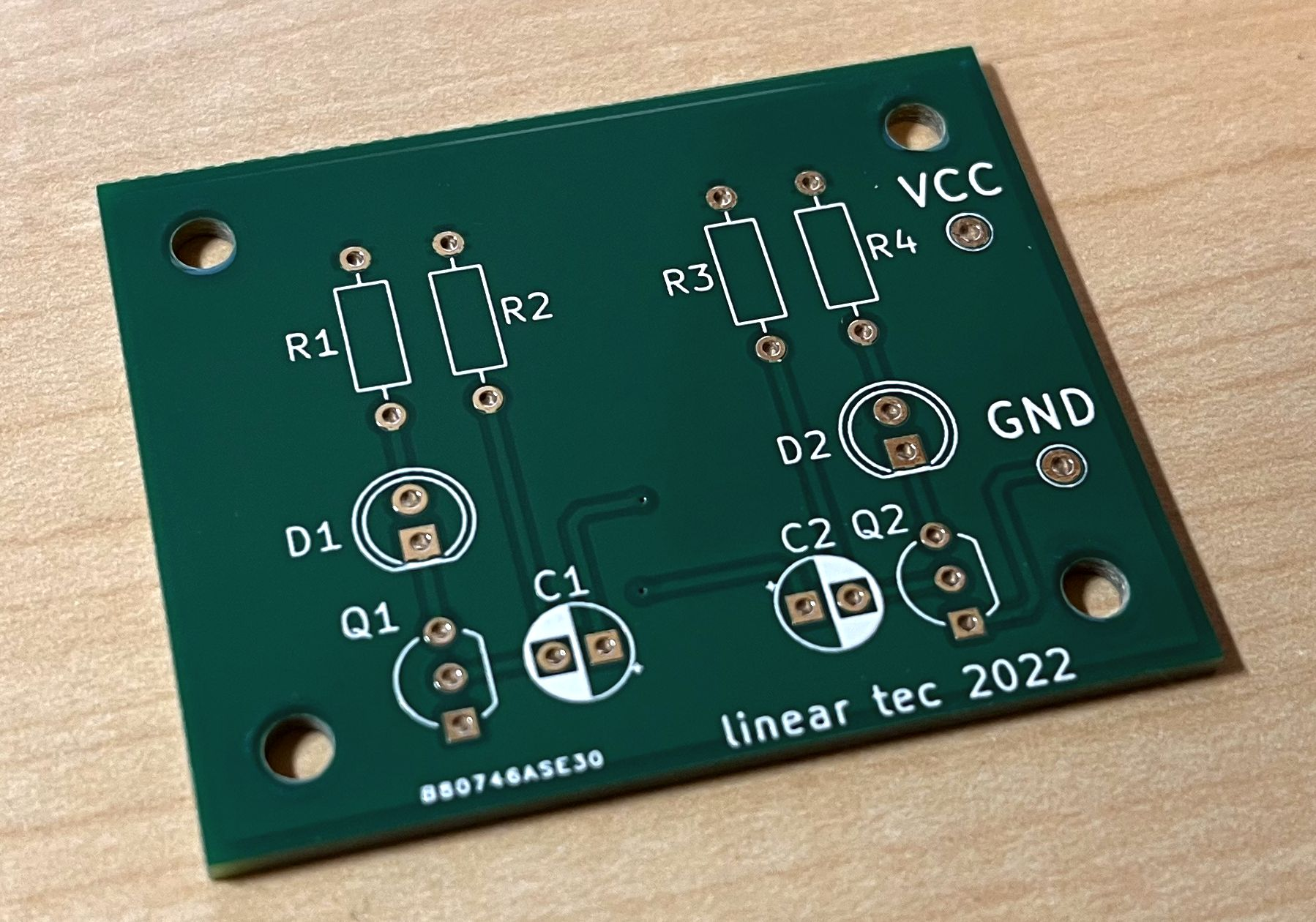 図108に,シルクを調整した後の様子を示します.テスト・ポイントのシルクは文字を“VCC”と“GND”に変更して,他よりも大きめにしました.また,基板の下部に“linear tec 2022”という文字を入れました(リニア・テックはうちの屋号です).その他の調整はお好みで自由に行ってください.