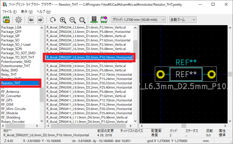 自作のフットプリントを使っている場合,基板のレイアウト作業が進んだ後にフットプリントを修正したくなることがあります.こういった場合に,レイアウト画面上でフットプリントを再読み込みする手順を説明します.