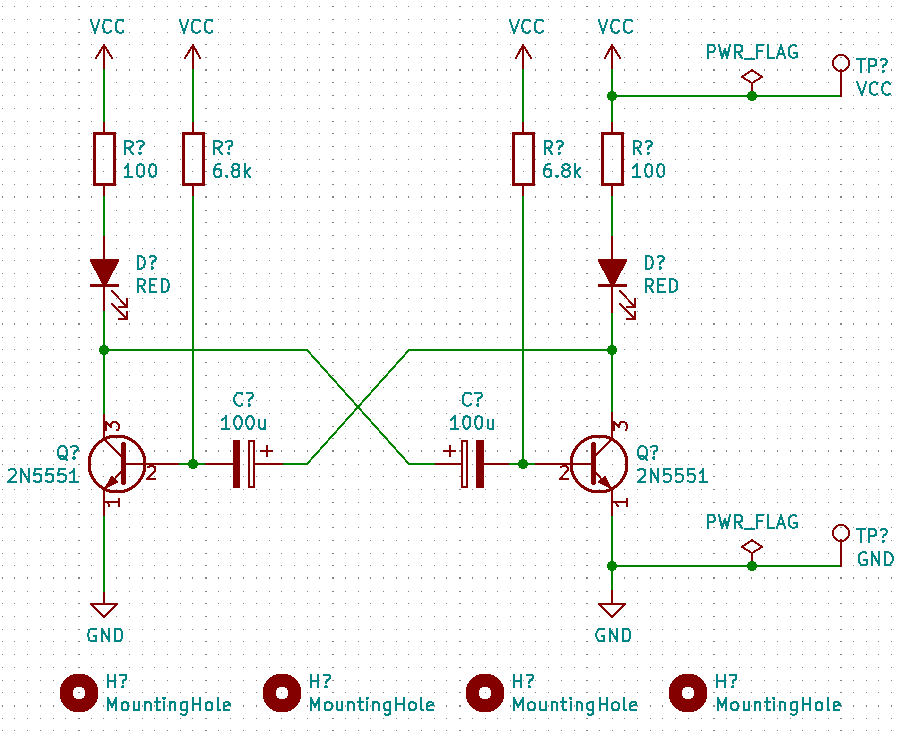以下,この回路の動作原理を簡単に解説します.KiCadの操作方法と直接は関係ないので読み飛ばしても構いませんが,電子回路の動作原理を理解しておくと自分で作る時の楽しさが何倍も大きくなると思います.