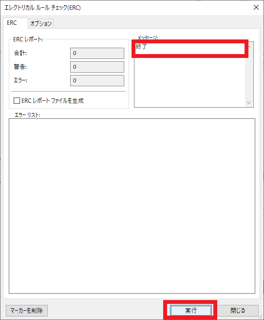 図124の画面が表示されるので,[DRCを実行] をクリックします.ここで「問題/マーカー(0)」および「未配線アイテム(0)」という具合に,エラーが0件となることを確認してください.もし何らかのエラー・メッセージが表示された場合は,それにしたがってレイアウトを修正してください.