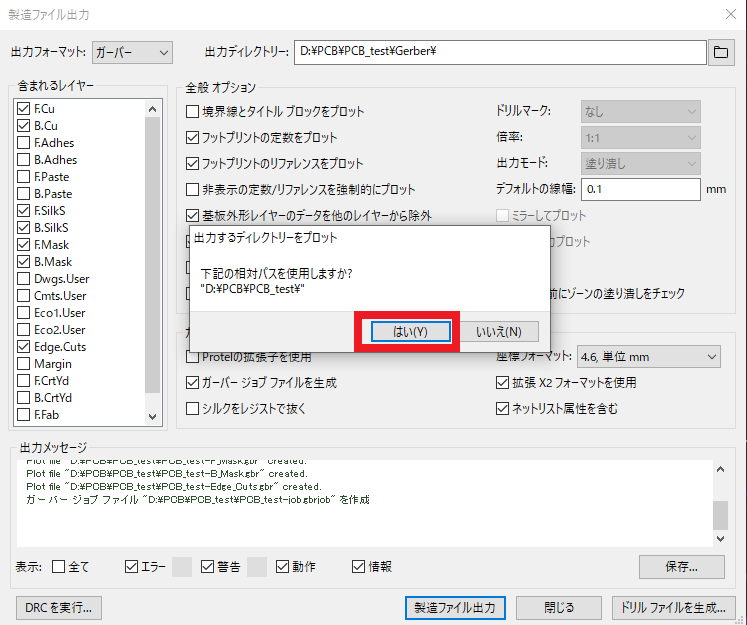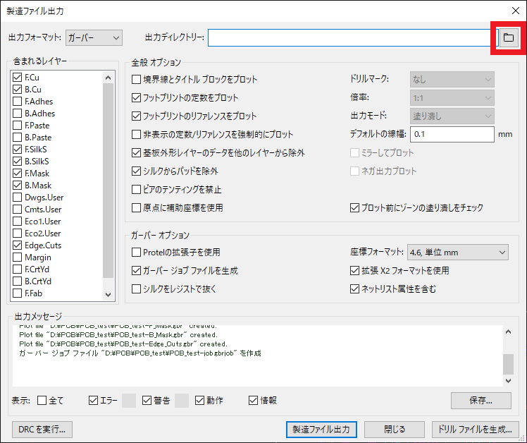 この状態で [製造ファイル出力] ボタンをクリックすると,指定したディレクトリにガーバ・データが保存されます.