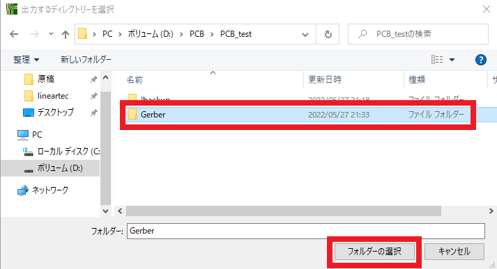 図129に示すように,今回はプロジェクトのディレクトリの中に“Gerber”というディレクトリを新しく作り,ここを指定しました.