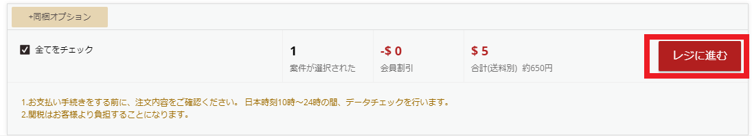 「送料」の項目では“JAPAN”を選択し,貨物輸送会社は“DHL”を選択しました.個人的に,いままでDHLを使っていて大きなトラブルはありませんでしたが,もし他の輸送会社が良い場合はお好みで選択してください.