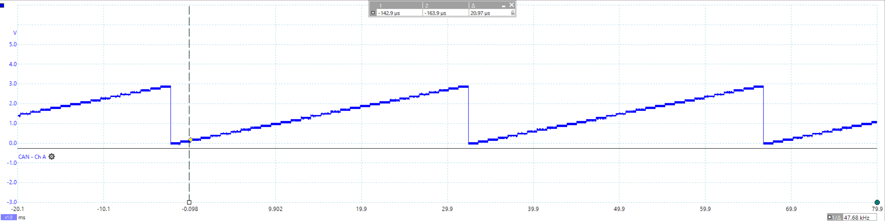 のこぎり波状に電圧が上がっては下がる信号を出力する