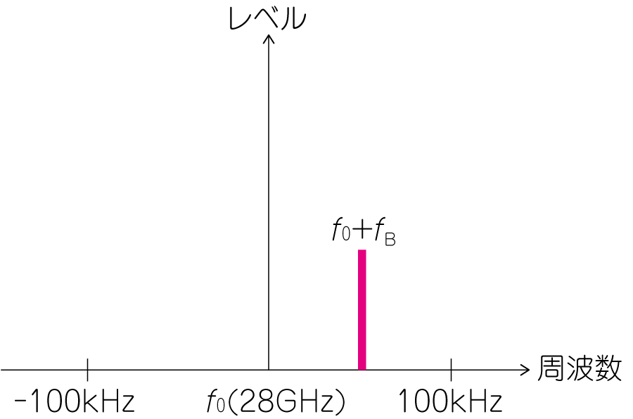 図3(b)に示すように,図3(a)のRF信号(Tx)に,28GHz($f_0$)のローカル信号を掛け合わせると,$f_0$は0Hz(ベースバンド周波数)に変換され,ベースバンド信号の周波数は0Hz(DC)をまたいで正負に現れます.
