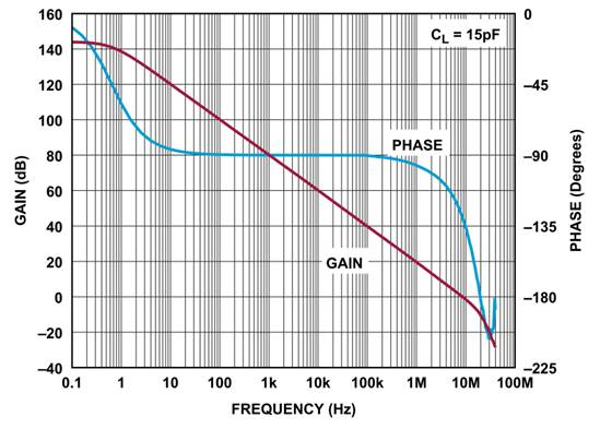 OPアンプはそれぞれの製品種別ごとでゲイン対周波数特性をもっています.図1にアナログ・デバイセズの高精度OPアンプである,ADA4510-2のゲイン対周波数特性のグラフを示します.