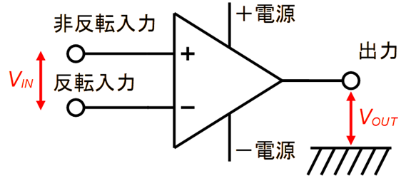 OPアンプはフィードバックをかけて,抵抗の比率により目的のゲインを設定しますが,ここでは図2のように,フィードバックをかけない状態でのOPアンプ単独の入出力間のゲイン($V_{OUT}/V_{IN}$)を示しています.
