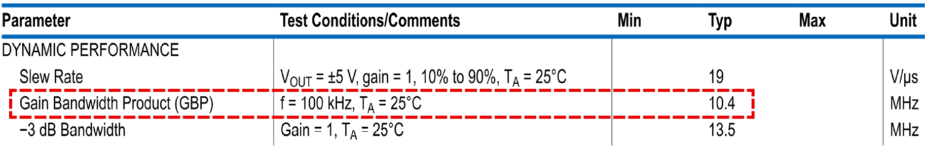 このように目的とする最大動作周波数と動作ゲインから,$GBP$を計算し,それに合致するOPアンプを選定することが基本です.