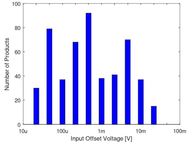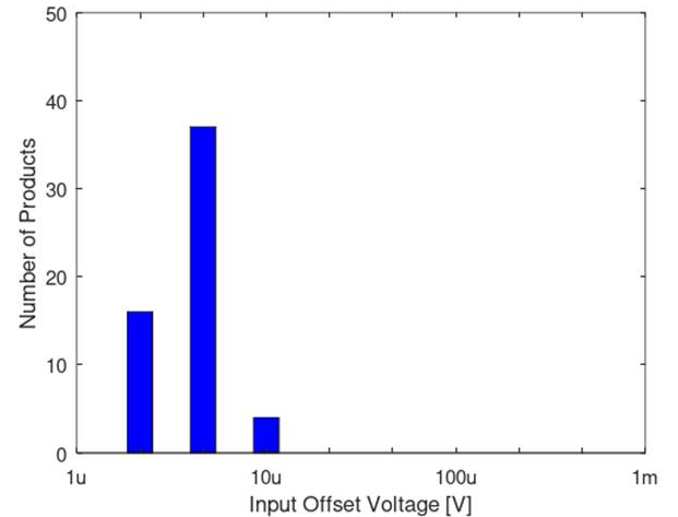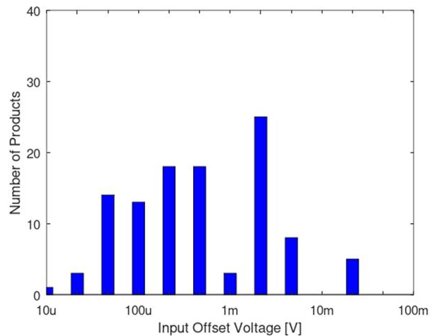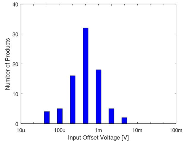 図7 アナログ・デバイセズのCMOS OPアンプ108製品の入力オフセット電圧(max値)の分布