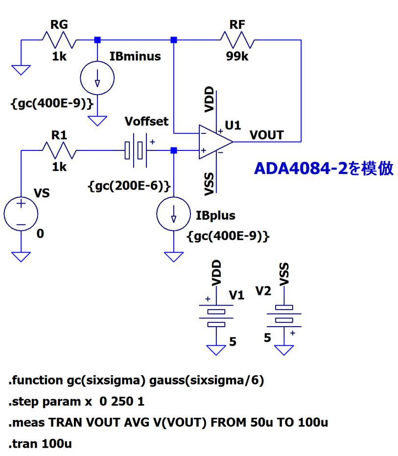 ここでは理想OPアンプ・モデルを使用して,それにデータシート記載の誤差要因の数値を加え,品質管理的なシミュレーション方法で回路全体の誤差を解析してみます.