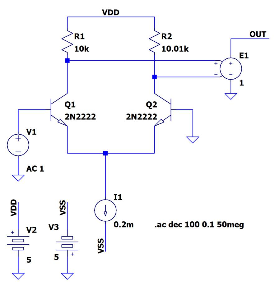 図3 入力差動回路のモデルを0.1$%$アンバランスさせた