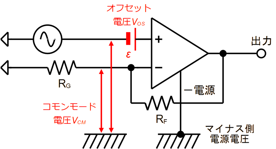 オフセット電圧は,入力端子間での電圧差分の誤差要素です.このようすを図2に示します.