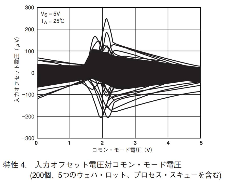 多くの場合データシートに,入力オフセット電圧対コモン・モード電圧の特性が記載されています.これらをきちんと確認しておく必要があります.
