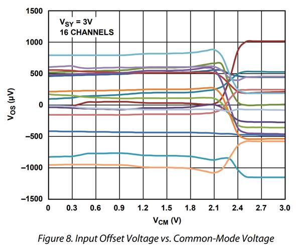 これは内部回路の構成が理由で,データシートにもその範囲がきちんと記載されています.図3はレールtoレール入出力ではないADA4077-2の例です.