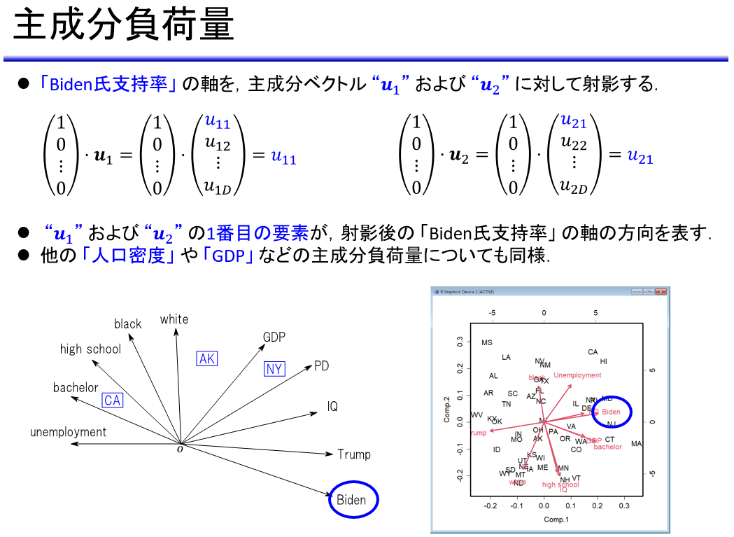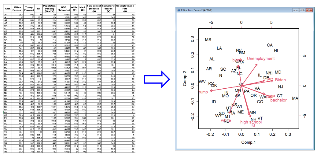図1 2020年アメリカ大統領選挙のデータをもとに「主成分分析」を実行する