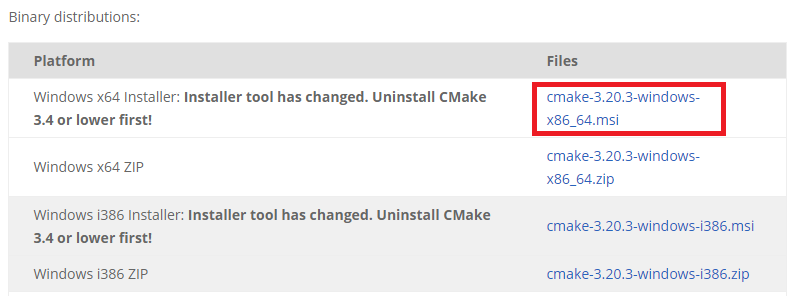 “Binary distributions”という項目の中から“Windows x64 Installer”を探します(図13).今回は実行形式のインストーラである“cmake-3.20.3-windows-x86_64.msi”をダウンロードします.