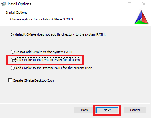 図17の画面では“Add CMake to the system PATH for all users”を選択して [Next] をクリックします.