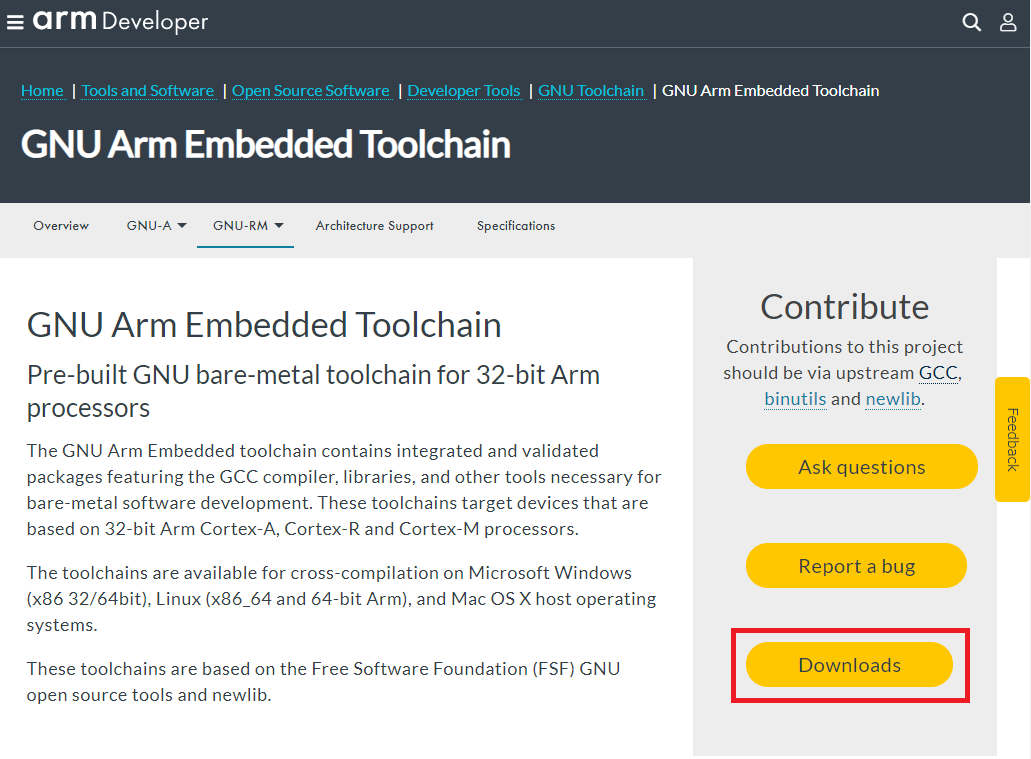 図3のように,“GNU Arm Embedded Toolchain”のページにアクセスして“Downloads”のボタンをクリックします.