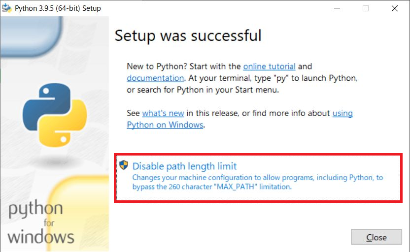 インストールが完了すると図35の画面が表示されるので,“Deisable path length limit”をクリックします.「このアプリがデバイスに変更を加えることを許可しますか?」と表示されるので「はい」をクリックします.